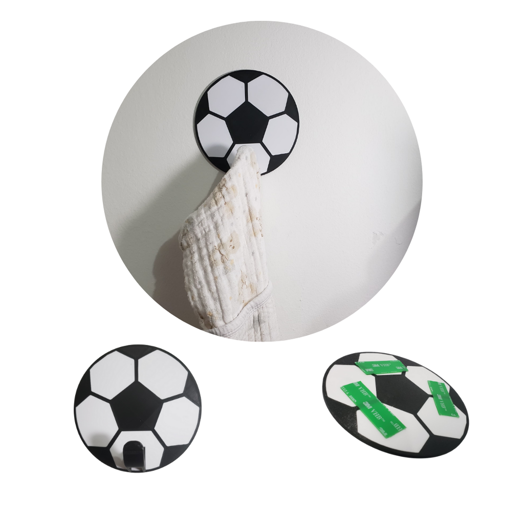 DESIGN ESPORTIVO: Gancho de parede decorativo em formato de bola de futebol, com padrão clássico em preto e brancoINSTALAÇÃO PRÁTICA: Fácil de montar na parede, ideal para organizar e decorar quartos, vestiários ou áreas esportivas